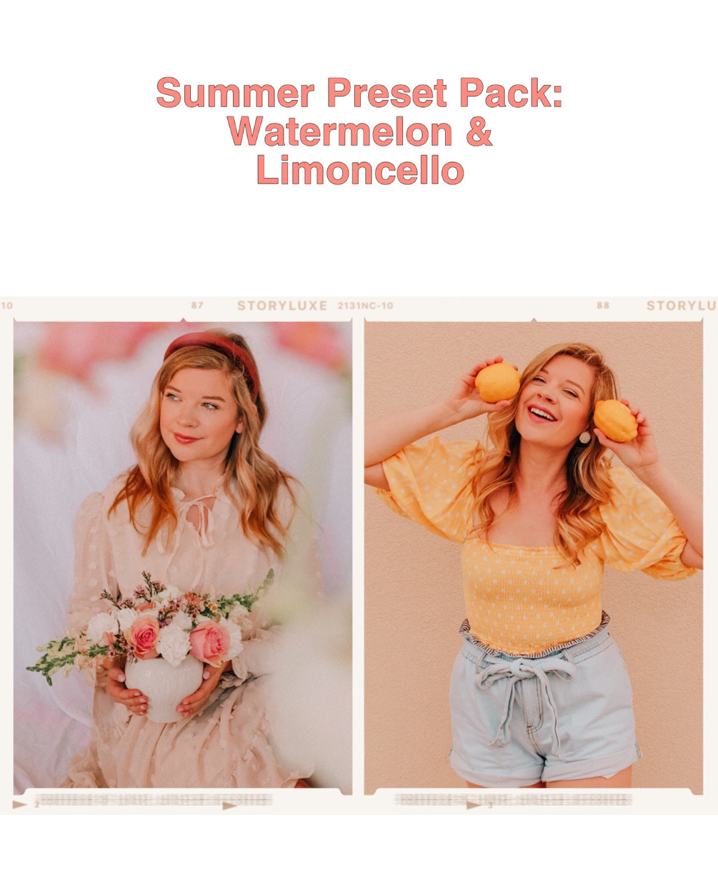 Unlimited access to both Watermelon and Limoncello Mobile Presets! If you enjoy the outcome of both presets and like a variety of cohesive edits to play around with, this pack is for you. More bang for you buck, and the presets will achieve beautiful, bright summer photos!  Also included are the instructions for downloading. Feel free to email or DM me if you have any questions. Much love, Emily. <3